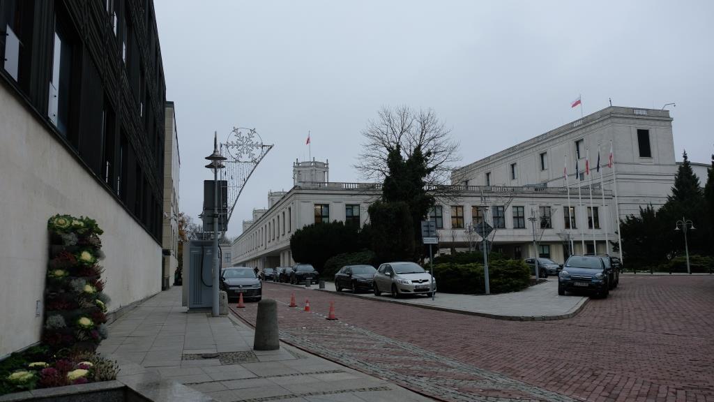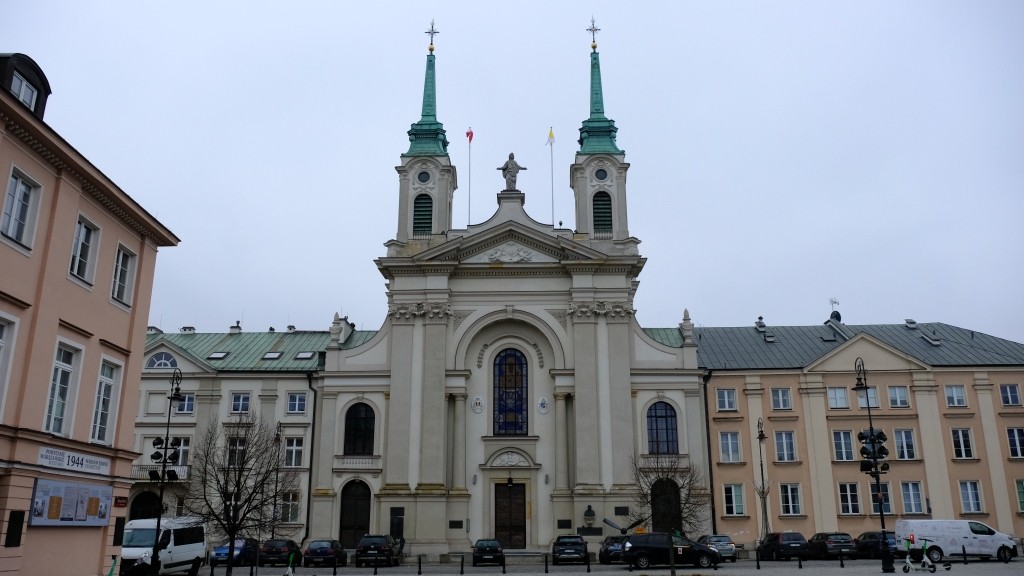 Gegenüber steht die Feldkathedrale der polnischen Armee.