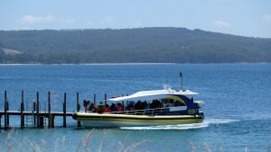 There we had a rest, first we read, then we had a nap. After that we had a bite to eat at the Olive Tree Café (highly recommended!). And then we went back to the lake, because we had booked a tour of the glow-worm caves! For that we first had to cross the lake with the ferry.