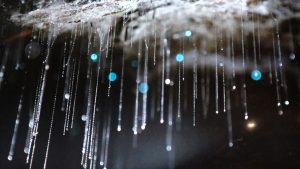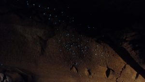 Now we first saw a short film, and with that we were taught a few things about the „glow-worms“. Those are the larvae of the fungus gnat. They spin sticky threads and then lure flying insects with their light.