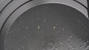 The threads hang from the ceiling. And here you can see the adult insect which, by the way, has no mouth, no stomach and does not sting you.