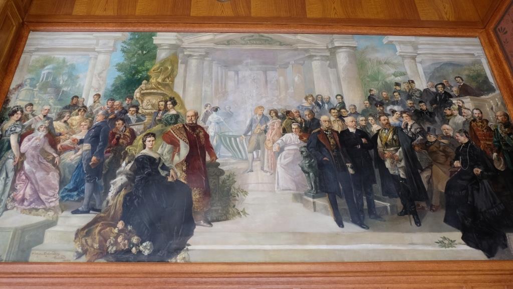 Many paintings are on display. Here one of the local artist Wilhelm Schneider. 1914 he captured on it not only emperor Franz Josef I and his wife but also many other famous visitors, among them Beethoven, Goethe, Chancellor Metternich and Pope Leo XII.