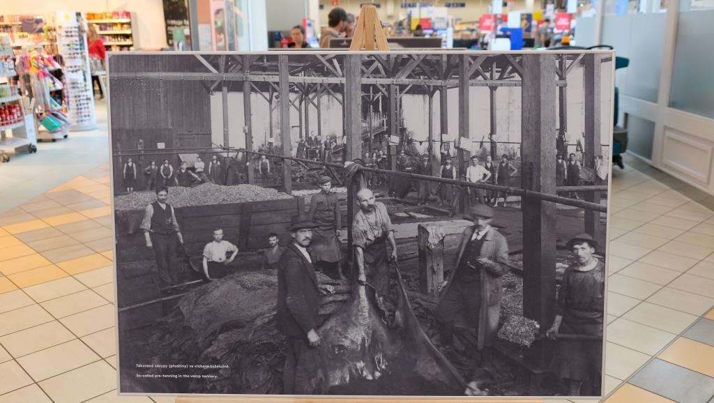 Auf dem Weg aus Tschechien mussten wir dann noch kurz einkaufen gehen. Wir fanden eine kleine Mall mit einer Aussstellung zu alten Arbeitswelten, hier geht es ums Gerben.
