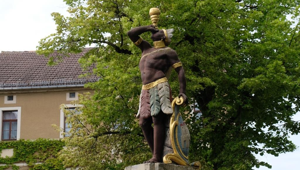 Es gibt auch einen passenden Brunnen dazu … Die Geschichte dazu erzählt von einem schwarzen Sklaven, der fäschlich des Diebstahls bezichtigt und fast hingerichtet wurde.