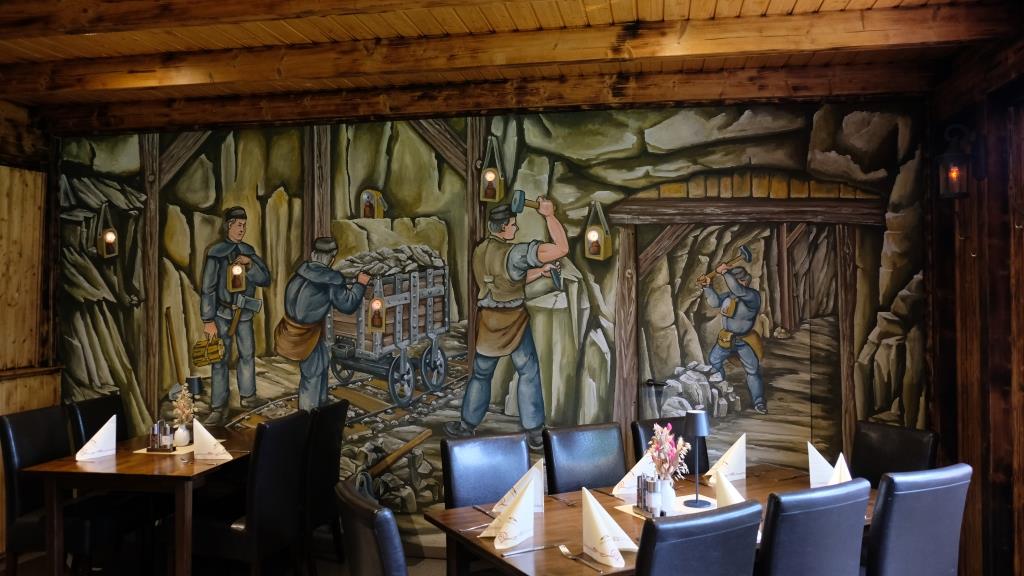 Da hatten wir ein leckeres Abendessen vor sehr schön bemalten Wänden.