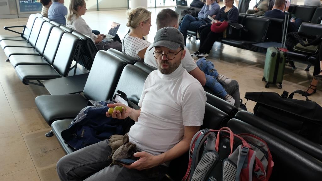 In Frankfurt circa 2 Stunden Aufenthalt. In der netten Lounge mit den vielen kleinen Zimmerchen lässt es sich gut aushalten.