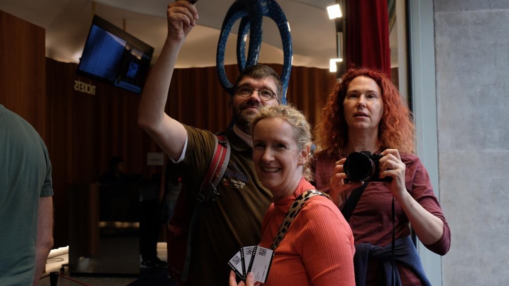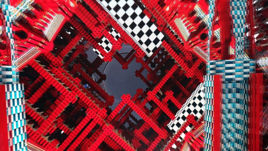 Der letzte Raum: In einem Würfel stehen wir im Dunkeln, dann starten die Projektionen.