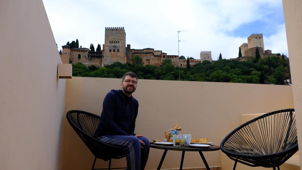 And then we had a nice little breakfast up on the roof, in front of the Alhambra.