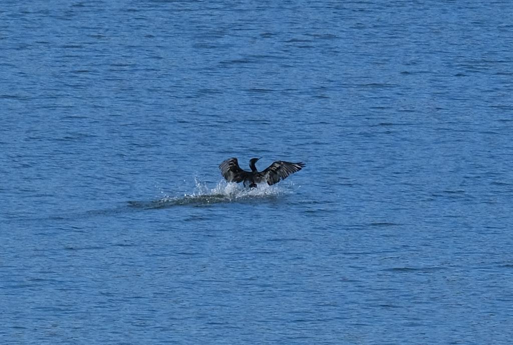 Wieder etwas größer: der Kormoran auf dem Wasser.