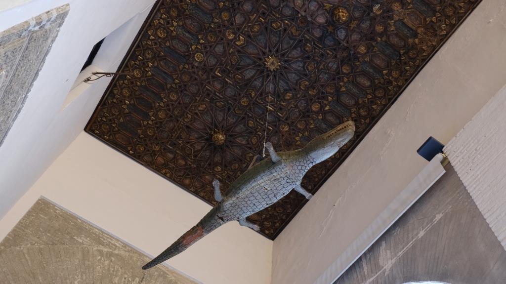 Right at the entrance to the cathedral is hung up a gift that Alfonso X had received from the emir in Egypt. (back then it was still alive)