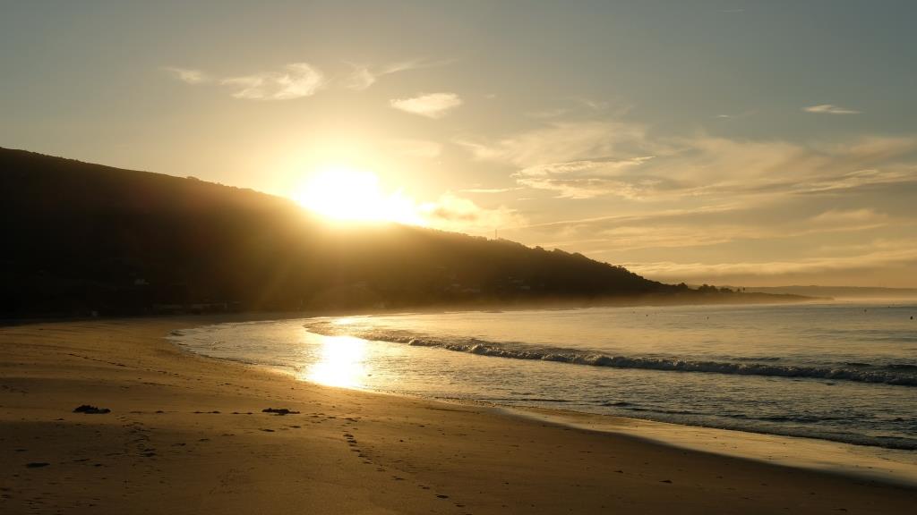 Heute morgen sind wir zuallerst früh morgens an den Strand.