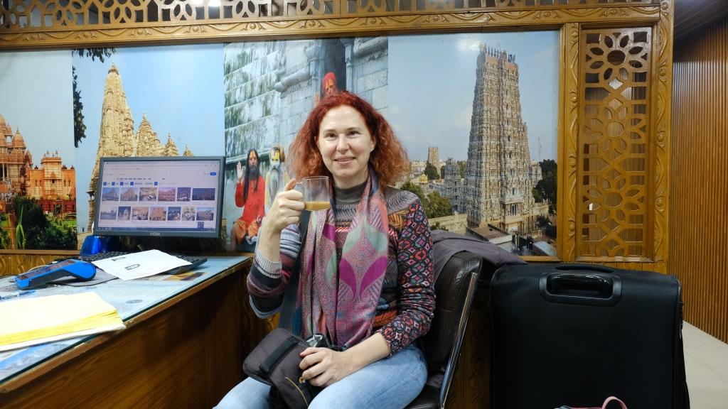 Als erstes haben wir Masala Chai gekriegt, sehr lecker. – Morgens um 3:39 Uhr mittlerweile.