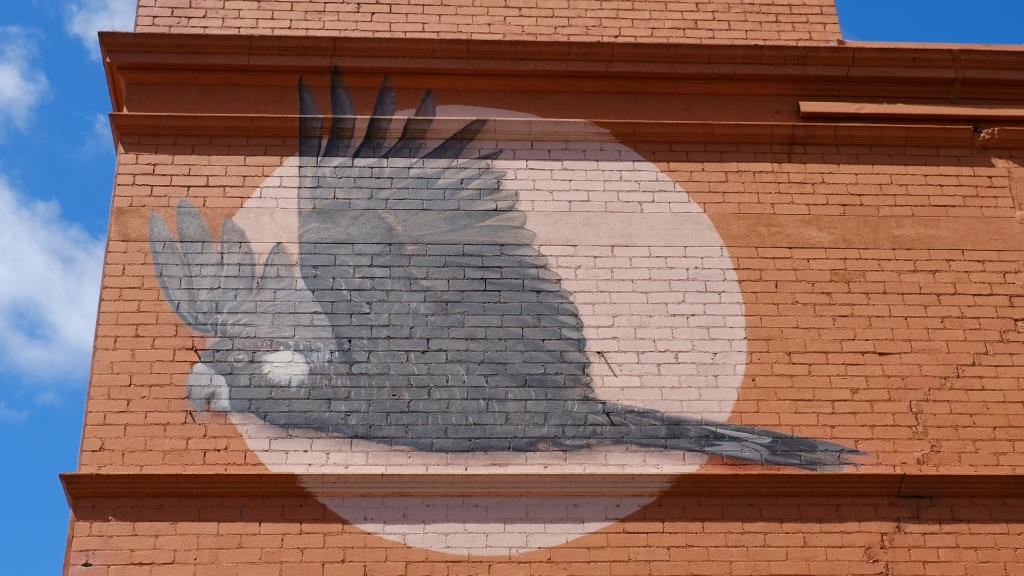 Dieses Kunstwerk ist von Guido van Helten. Das ist wohl die größte Wandmalerei der Welt?! Auch hier haben wir Vögel beobachtet.
