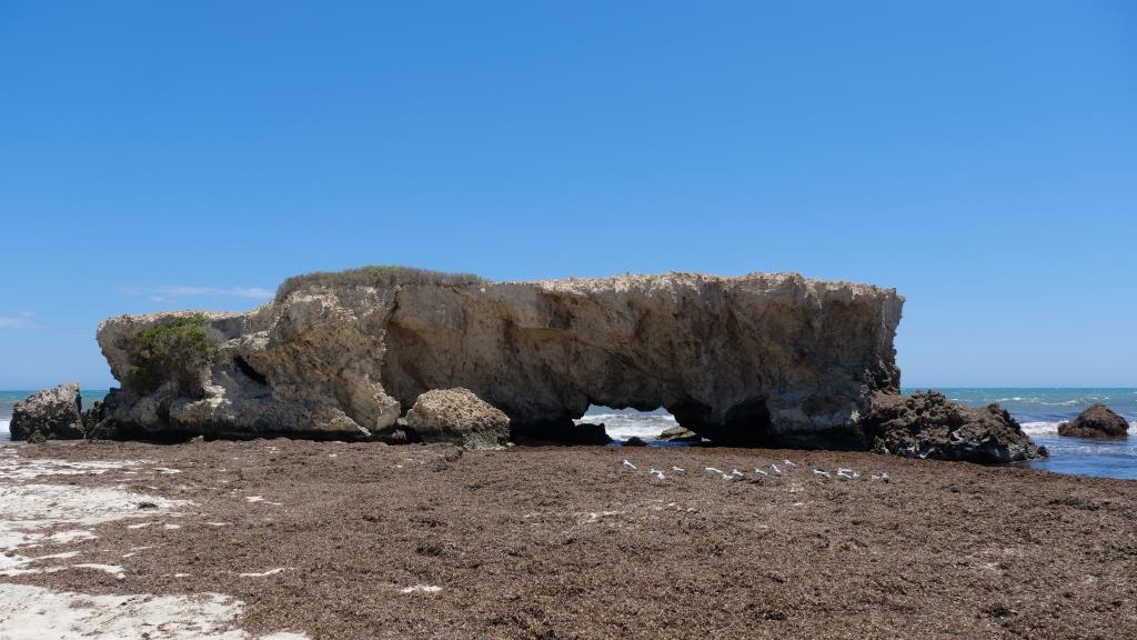 Wenn man den Strand entlang läuft, stößt man immer wieder auf große Felsen. Mal einen, mal zwei …