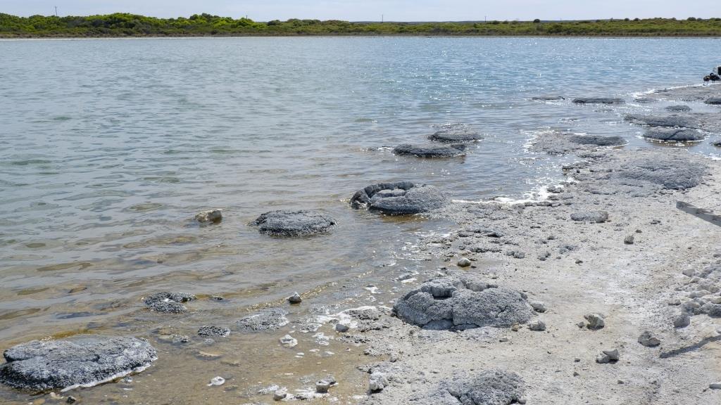 Die Cyanobakterien, die diese Stromatolithen gebaut haben, ähneln den frühesten Lebewesen, die auf der Erde entstanden und die Sauerstoff für spätere Lebensformen produzierten. Und am Ufer saßen die hier herum 😊