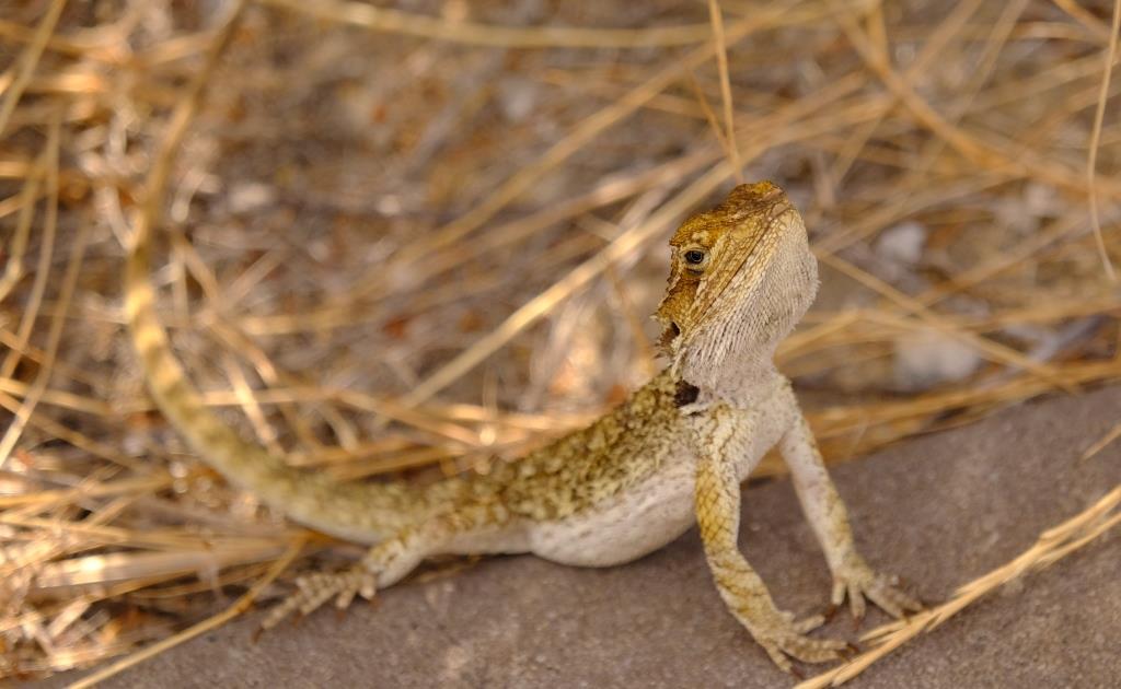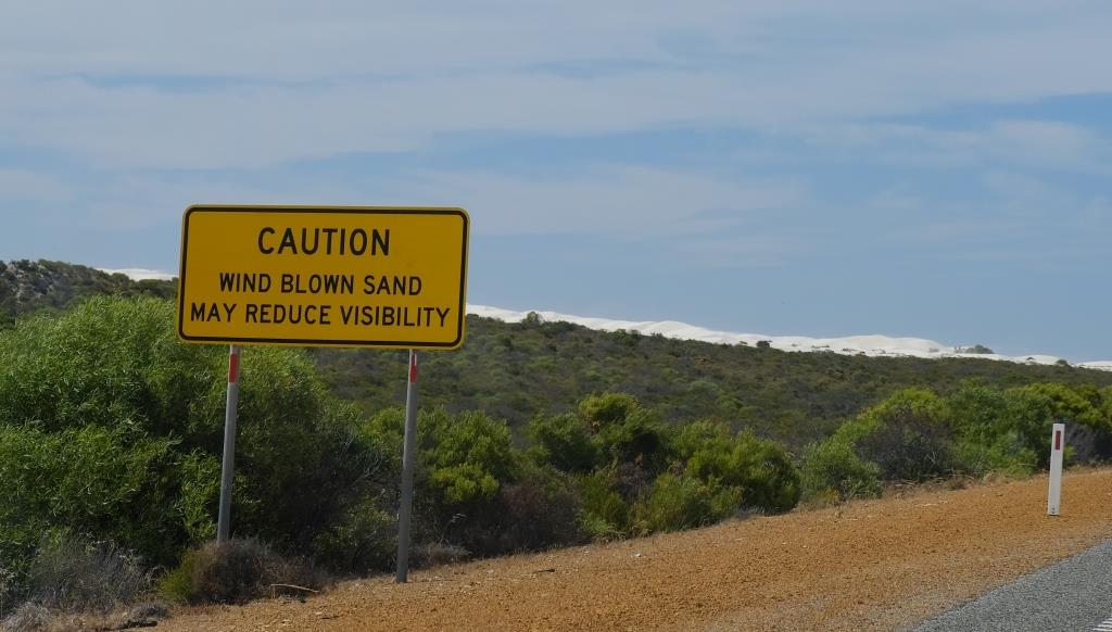 Immerhin ist heute nicht so viel Sand in der Luft wie gestern. (Bei den Pinnacles haben wir das an den nackten Beinen schmerzhaft gespürt, wenn der Wind uns mit den Sandkörnern gepeitscht hat.)