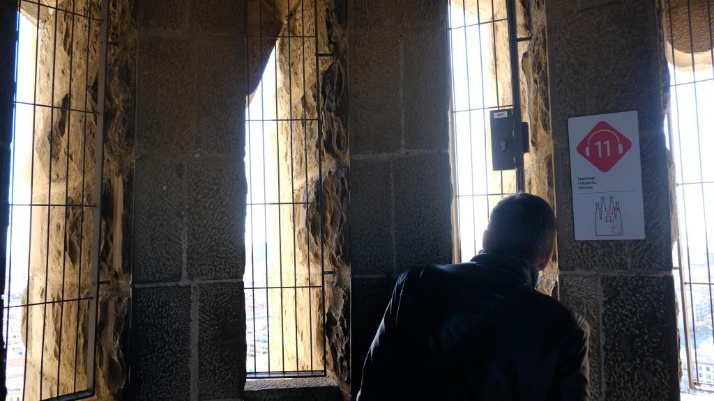 But we now go up one of the towers first.