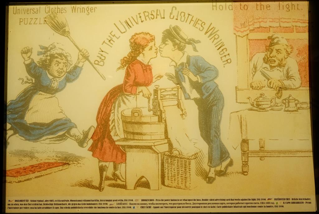 Das ist Werbung aus den USA von 1880. Was erzürnt wohl den Chef hier? Man sieht es, wenn man die Karte gegens Licht hält: