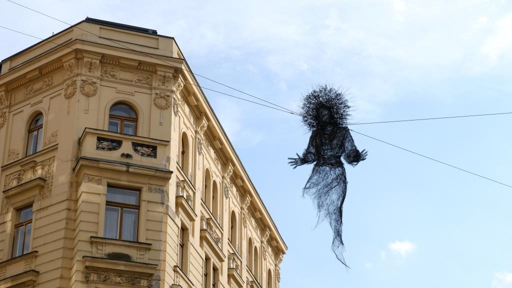 That is once again art by Michal Trpák, “Looking for Happiness”. And next we saw another piece of art by David Černý: The head of Kafka.