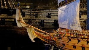 A lot of cannons the king had ordered – for two cannon decks. But not only that never until then had such a ship been built in Sweden, it was simply problematic, for the cannons made for a lot of weight rather high in the ship’s hull, that negatively influenced the balance. And then of course also because this way the ship could not be allowed to lie in the water any lower than just below the gun ports of the second deck. For the rocks that were placed in the bottom of the keel, there was not much space …