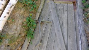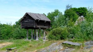 Hier haben wir ein traditionelles Lagerhaus, wie die halb-nomadischen Lappen sie errichtet haben. Keine Fenster, normalerweise auch keine Tür und Leiter, zugänglich nur durch eine Falltür im Boden.