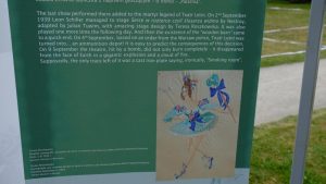 And we walked on and took a shortcut through a little park. There once again we stumbled across all kinds of wall charts: A theater used to be located here, the Teatr Letni („Summer Theater“). The theater had been built in 1870, using nothing but wood – as a preliminary solution. The plan back then had been to later on re-build it at a different spot, using more durable materials. But the way it always is with preliminary solutions …