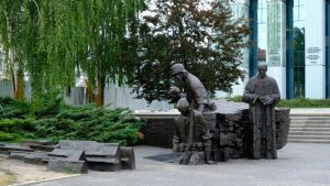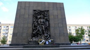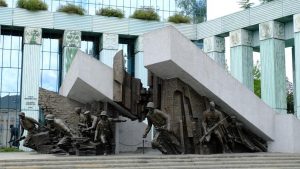 Vor dem Museum steht das Denkmal für die Helden des Warschauer Ghettos. Das ist der Ort, an dem Willy Brandt 1970 niederkniete.