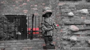 In front of the wall there is the statue of the Little Insurrectionist – to honour the child soldiers who fought along in the uprising of 1944.