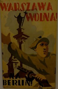 A poster by J. Kulikowski: „Warsaw free“ and „On to Berlin!“.