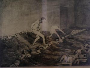 So sah es dann bis Frühling 1941 aus: die Gefangenen schliefen eng gedrängt auf Stohsäcken. Am Morgen mussten diese gesammelt und in einer Ecke angeordnet werden.
