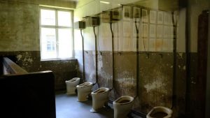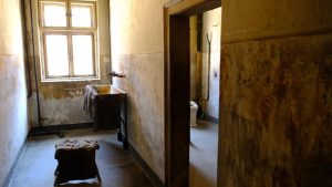 The washroom where women stripped before execution. Then they were led in twos to the yard and shot at the „Death Wall“.