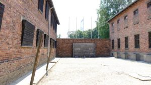 This (outside the camp) is where the camp Gestapo was located. Prisoners suspected of involvement in the camp’s underground resistance movement or of preparing to escape were interrogated here. Many prisoners died as a result of being beaten or tortured. The first commandant of Auschwitz, SS-Obersturmbannführer Rudolf Höss, who was tried and sentenced to death after the war by the Polish Supreme National Tribunal, was hanged here on April 16, 1947.