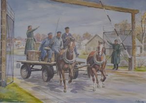 On 29 December 1942, a horse-drawn cart coached by Otto Küssel, a German Kapo cooperating with the resistance, left Auschwitz I. There were three Polish inmates sitting on the cart: Jan Komski (Baras), Mieczyslaw Januszewski, and Boleslaw Kuczbara dressed in an SS uniform and „guarding“ them. The purpose of the escape was to smuggle materials documenting the crimes perpetrated by the SS from the camp.