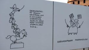 In front of it there was an exhibition of cartoons by the artist Slawomir Mrozek.