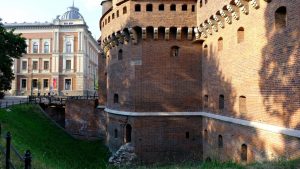 Der Stadtmauer vorgelagert war der Barbakan, in Form einer runden Bastion.