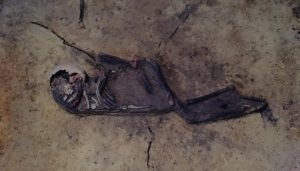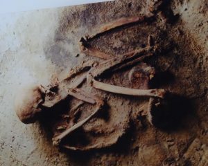 But there were also graves unearthed in which the bodies were arranged in strange ways. Corpses were buried lying on their side, the legs drawn up, or on their tummy, also decapitated or with arms and legs bound.