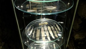Nachgebildete Kupferplatten – mit einem Gewicht von ungefähr 15kg, einem Durchmesser von ca. 30cm – und ein Viertel einer Kupferplatte aus dem 14. Jahrhundert. Meist hatten solche Platten einen Durchmesser von 20 bis 40cm, das Durchschnittsgewicht war 20kg. Sie waren nur 1 bis 2cm hoch. Nur am Rand war eine Kante von ca. 3,5cm. Die Plattenreste, die in Krakau gefunden wurden, bestanden aus purem Kupfer (~98%). Der Preis für 50kg Kupfer war in der ersten Hälfte des 15. Jahrhunderts ungefähr 120 Groschen.