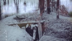 “At this time [2.9.], my outpost looked like this: inside a concrete position, a leftover from before the First World War, a light machine gun with one man, a heavy machine gun with two men and I, the commander. A spotter sat in a trench we had dug out next to a breakwater, and his task was to watch the beach during the day and to listen at night. Two soldiers were positioned on the little stairs leading down into the artillery bunker. Their assignment was to protect us from the side of the railroad tracks. They were armed with guns and grenades.” LS Bernard Rygielski