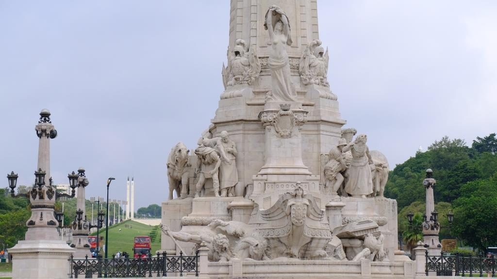 Aber erst hatten wir Probleme, so weit zu kommen. Wir haben die U-Bahn genommen, und am Praça Marquês de Pombal mussten wir umsteigen. Bis zur nächsten Bahn war eine Viertelstunde Zeit, also sind wir an die Oberfläche. Da haben wir diese Säule gesehen.