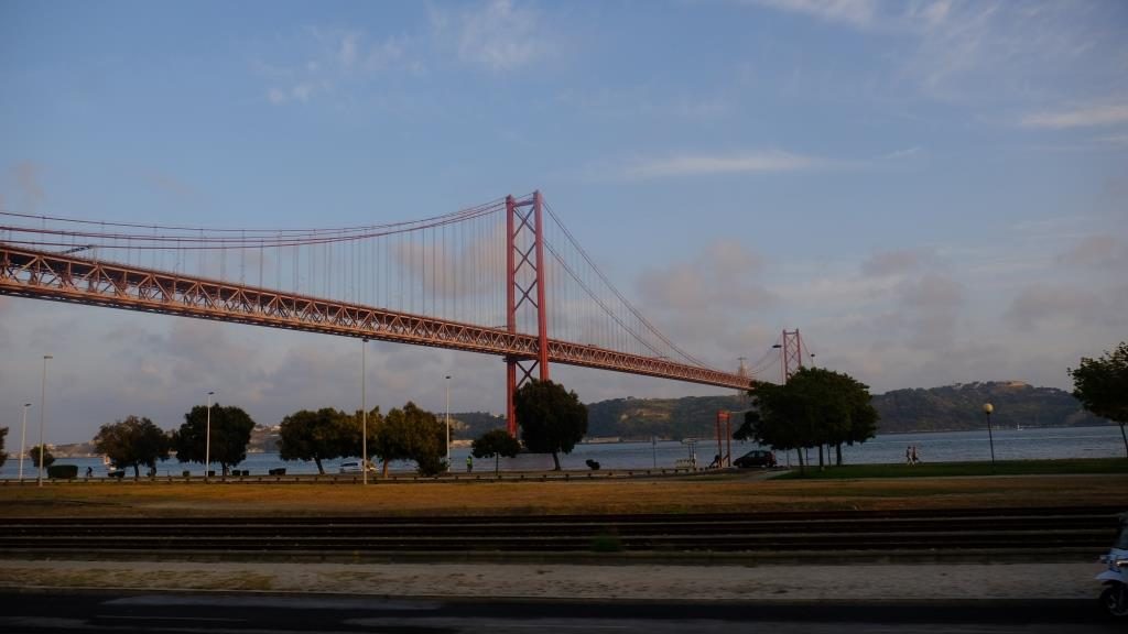 Hier am Wasser hat man auch einen schönen Blick auf die Brücke Ponte 25 de Abril. 1966 wurde sie als Salazar-Brücke eröffnet, doch nach der Nelkenrevolution 1974 wurde sie umbenannt.