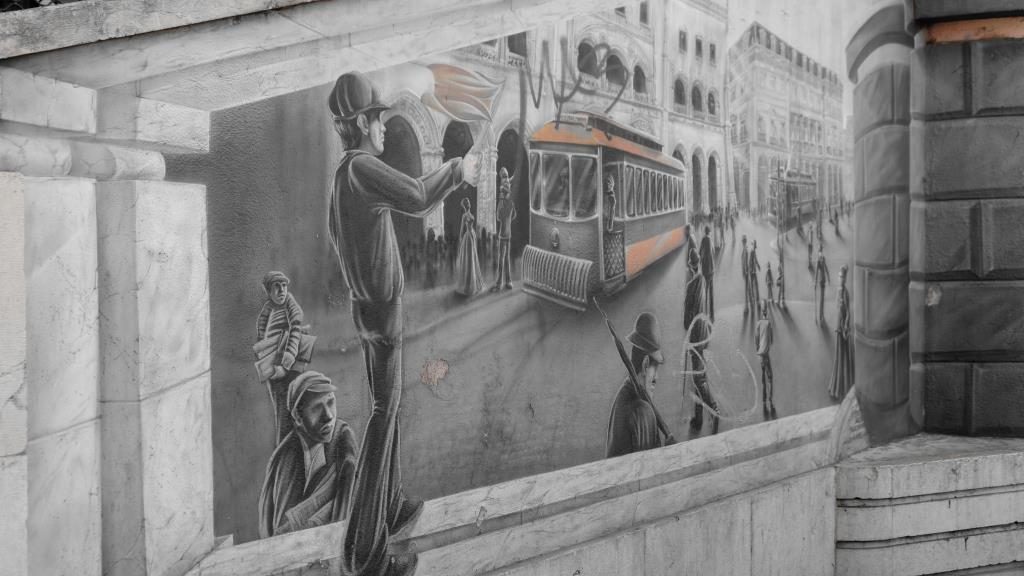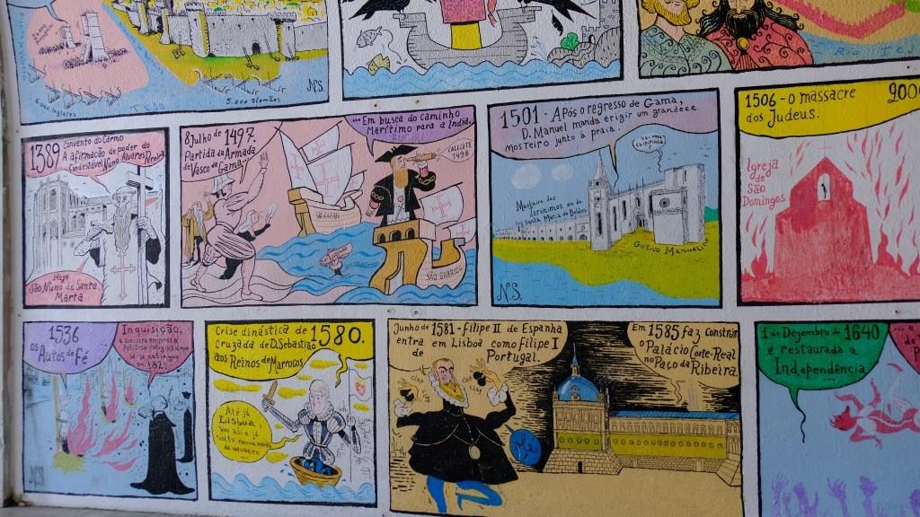 To a fascinating wall painting cartoon about the history of Lisbon!