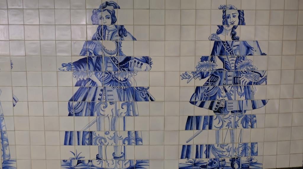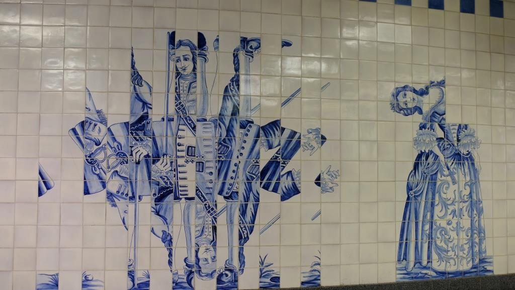 So, our third day in Lisbon, Now, it is Sunday, so there will be lots of people everywhere, but since we only came for a few days, that can’t be helped … So we took the subway and got back out at Campo Grande station. Where you can see these great pictures on tiles.
