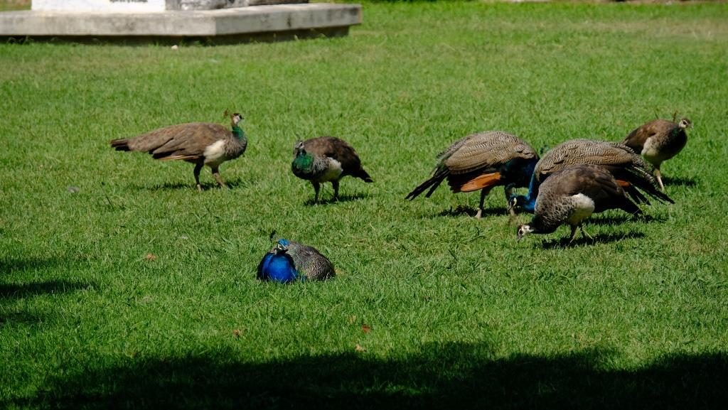 Etliche weiße Pfauen gab es da. Und auch eine Menge im gewohnten Federkleid.