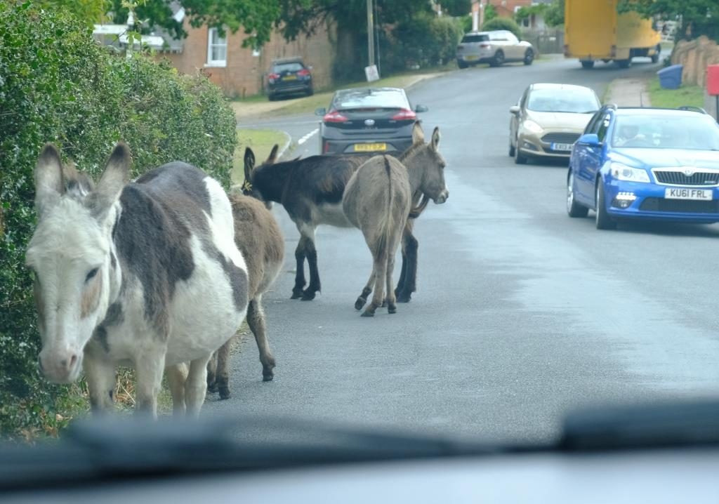 Wir sind mal wieder unterwegs! Leider nur für eine Woche, aber immerhin. Dieses Mal wollen wir uns eine – für uns – neue Ecke von England ansehen. Also haben wir uns in London Heathrow einen Mietwagen geschnappt und sind losgefahren. Nach ruhiger Fahrt auf den Motorways, damit man sich wieder an den Linksverkehr gewöhnen kann, sind wir Richtung Lyndhurst abgebogen. Und wir hatten Pferde (auch ein Fohlen) auf der Straße, Kühe, die direkt neben dem Asphalt lagen und auch Esel, wie man hier sieht.