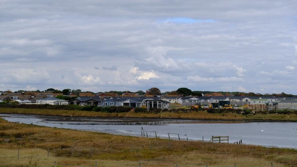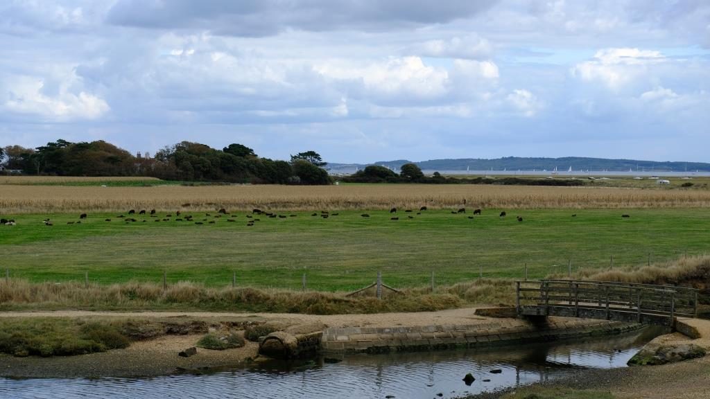 Das ist ein langer Kiesstreifen, der in einem Bogen ins Meer ragt und in dessen Schutz ein großes Gebiet von Salzwiesen liegt. Westlich des Spits das offene Wasser des Ärmelkanals und am Horizont die Isle of Wight, …