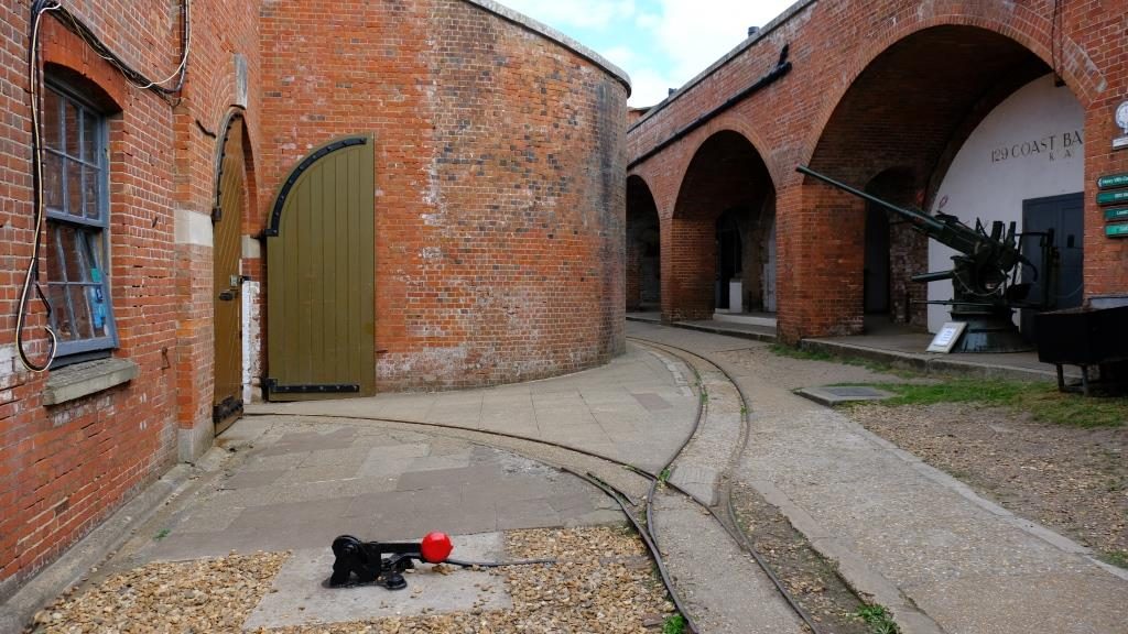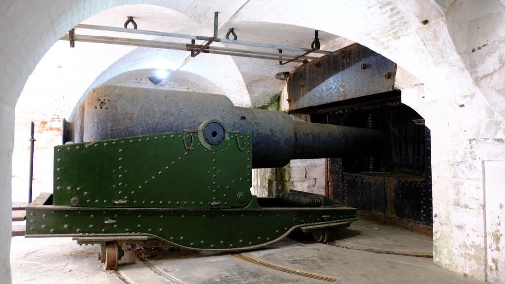 Hier seht Ihr „38-Tonnen-Kanonen“. Im Jahr 1886 hatte Hurst Castle zehn von diesen Riesen. Noch im ersten Weltkrieg wurde dafür gesorgt, dass sie immer geladen waren.