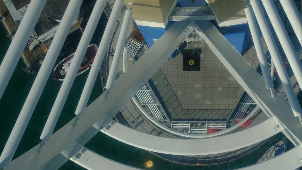 The tickets we had bought yesterday already, in combination with our visit of the Mary Rose Museum. The tower is 170m high, at 100m there is the main viewing platform, which at one spot also has glass panels you can walk on. (Take of your shoes!)