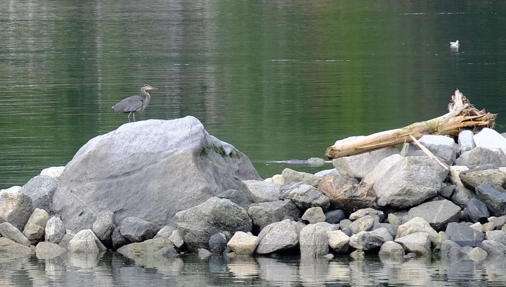 Birds we saw and heard quite a few. The belted kingfisher you mostly hear and then it just flies by. The blue heron is also around quite a bit.