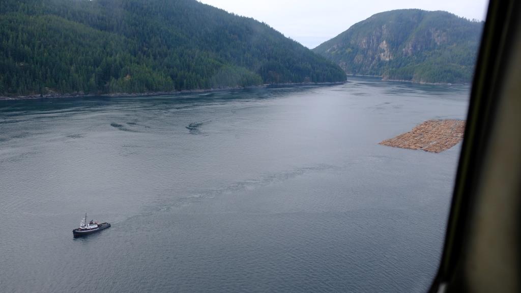 Dave, our fellow traveler, explained to us that the wood is being towed to the sawmill. There was also a boat with less wood in tow, that was on its way to the paper mill.