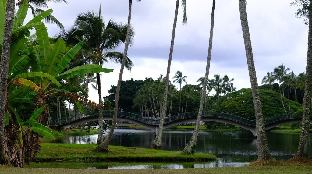 But eventually it swam on, and we drove on. When we had visited the Liliuokalani Gardens, we had on the way noticed this bridge you see on the left in the background.