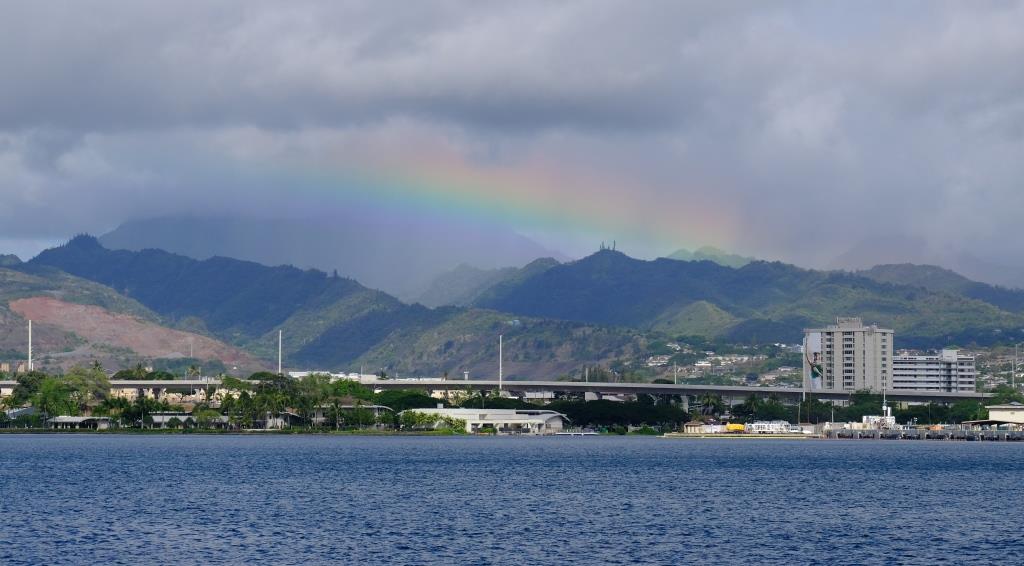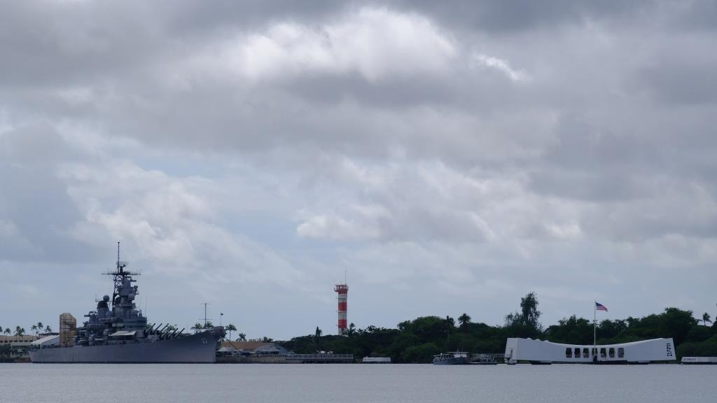 From where we sit we can see the USS Arizona Memorial.
